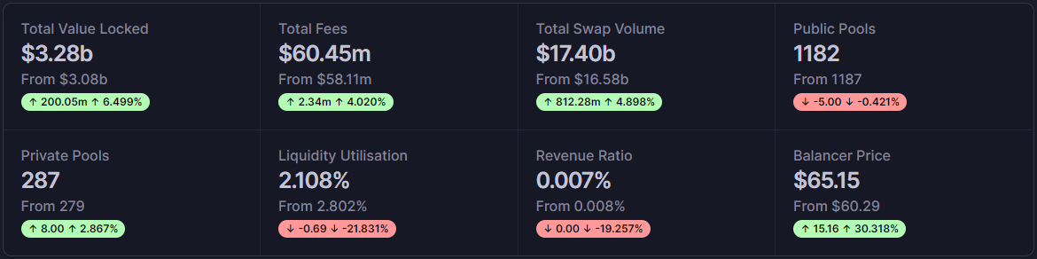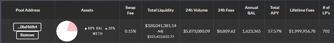 Yields were lower by around 3% compared to a week ago. ETH’s continued outperformance is draining yield from most other assets on balancer and that is the main factor in play here.